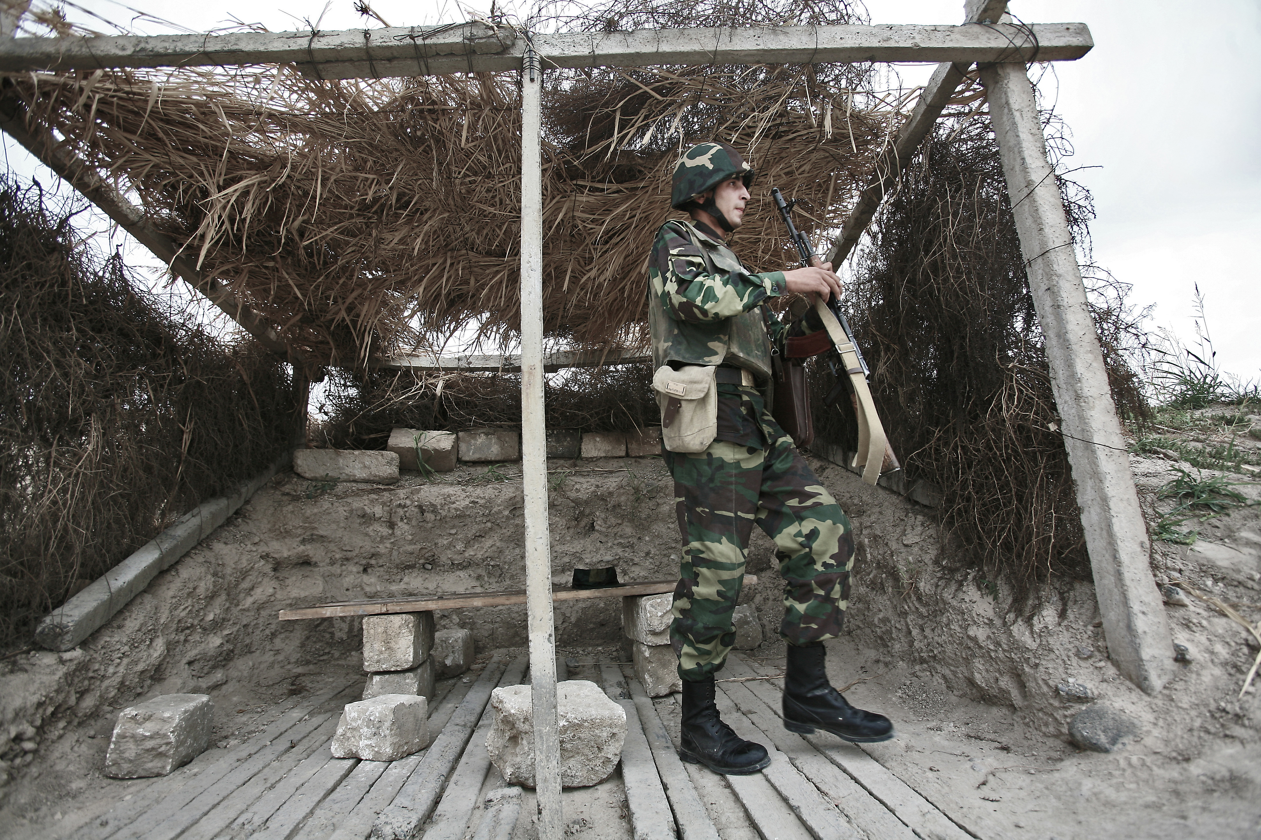Nagorno-Karabakh   Soldier Kevork (age 23) is doing his personal military training in the Martakert military base situated on the Northeast borderline with Azerbaijan. The Nagorno-Karabakh Republic Defense Army is the formal defense force of the Nagorno-Karabakh Republic and was founded on May 9, 1992. The army is currently composed of around 20,000 officers and soldiers and its primary role is the protection of the NKR from foreign and domestic threats. Violations of the cease fire along the frontier are frequent and often result in the deaths of several soldiers and civilians each year. One of the most dangerous spots on the borderline with Azerbaijan is Martakert. In Nagorno-Karabakh and Armenia the military service is compulsory for two years for the citizens at age of 18-27. Many of the Armenian soldiers are deployed in military units close to the border with Azerbaijan. Armenia officially declared itself as a guarantee of security of Nagorno Karabakh, but it doesn’t officially recognize the independence of Nagorno Karabakh. This makes military service a sensitive issue for both Karabakh's ethnic and Armenian population. Martakert, Nagorno-Karabakh, 20 September 2008.