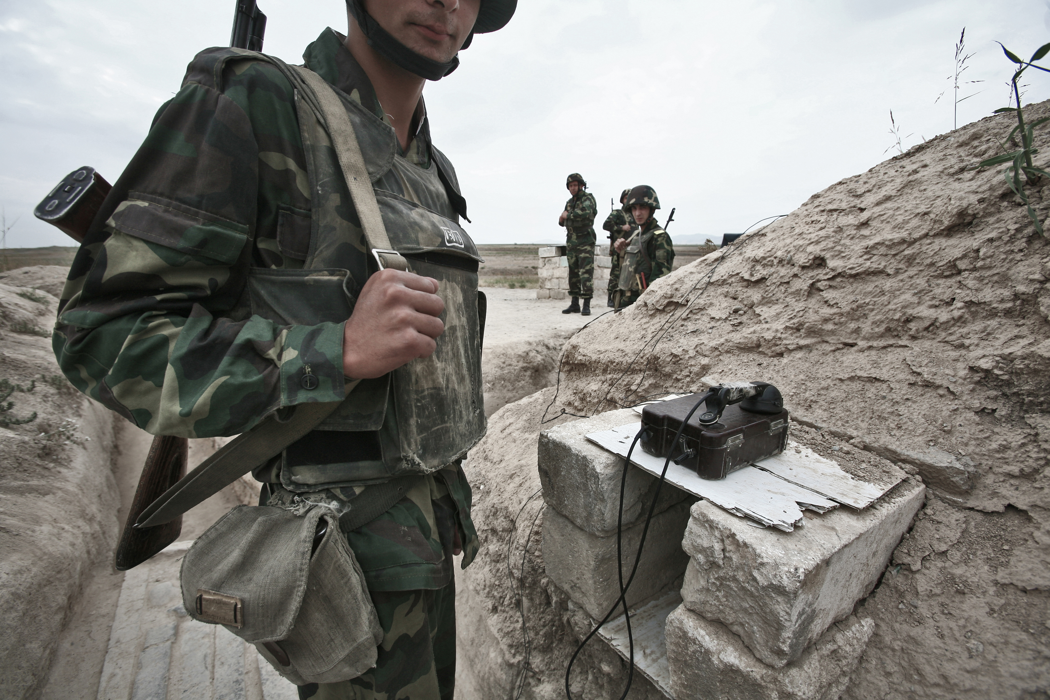 Nagorno-Karabakh   Soldier Maxim (age 20 - C) and his comrades patrol the border area with Azerbaijan - 300 m from the Azeri security point - in the Martakert military base situated on the Northeast borderline with Azerbaijan. The Nagorno-Karabakh Republic Defense Army is the formal defense force of the Nagorno-Karabakh Republic and was founded on May 9, 1992. The army is currently composed of around 20,000 officers and soldiers and its primary role is the protection of the NKR from foreign and domestic threats. Violations of the cease fire along the frontier are frequent and often result in the deaths of several soldiers and civilians each year. One of the most dangerous spots on the borderline with Azerbaijan is Martakert. In Nagorno-Karabakh and Armenia the military service is compulsory for two years for the citizens at age of 18-27. Many of the Armenian soldiers are deployed in military units close to the border with Azerbaijan. Armenia officially declared itself as a guarantee of security of Nagorno Karabakh, but it doesn’t officially recognize the independence of Nagorno Karabakh. This makes military service a sensitive issue for both Karabakh's ethnic and Armenian population. Martakert, Nagorno-Karabakh, 20 September 2008.