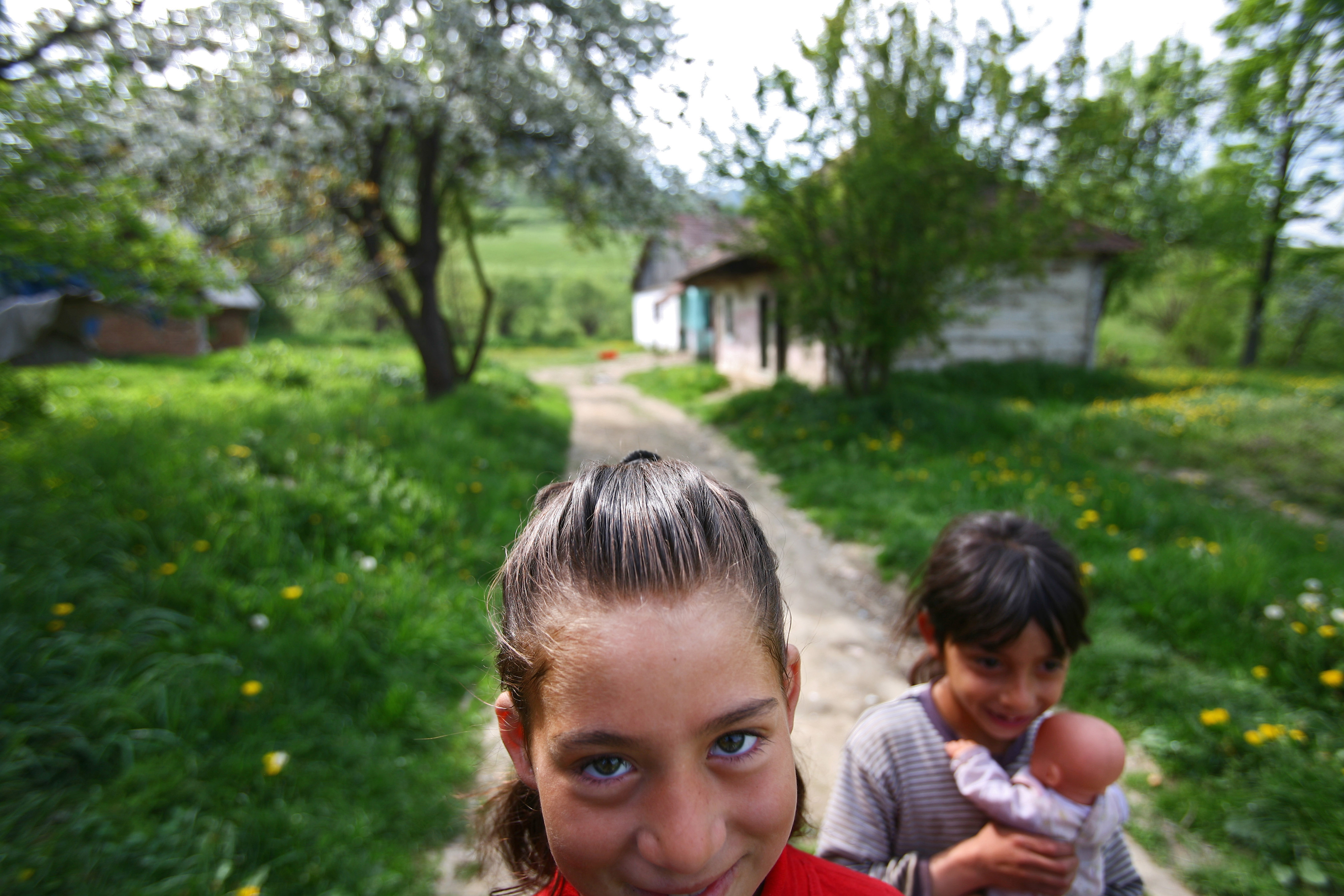Gipsy children   A gipsy girl is posing in front of her house, Sanmartin village, Harghita county, Romania, 12.05.2010