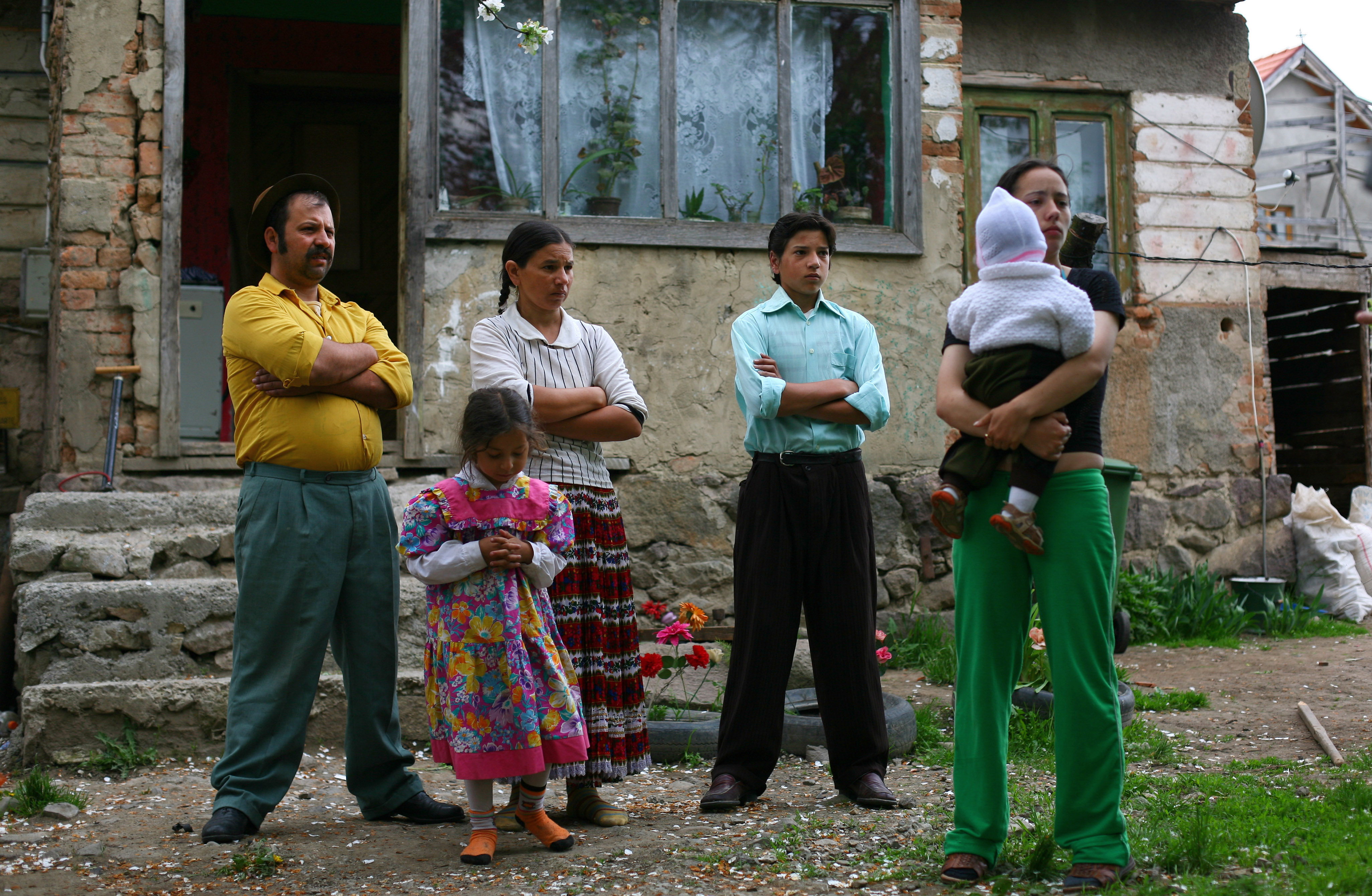 Grancsa family is posing in front of their house in Sancraieni village, Harghita county, Romania, 13.05.2010