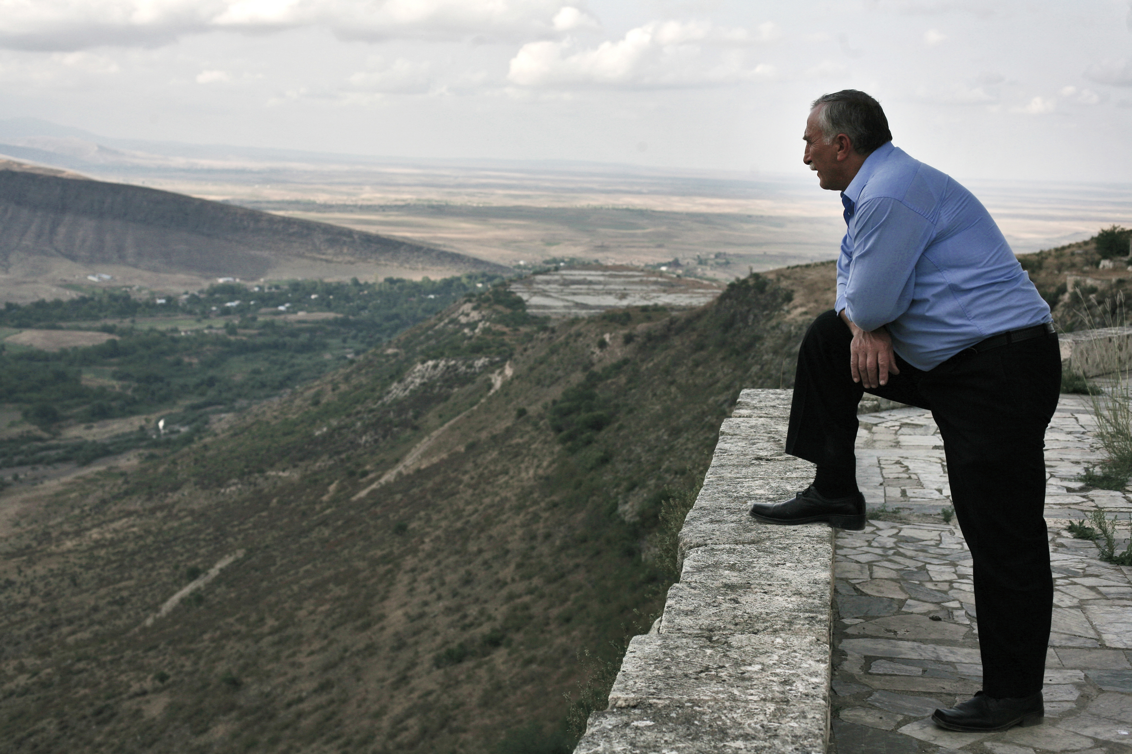 Nagorno-Karabakh   A man watches the ruins of the ancient city of Tigranakert from the plateau of the Vanqasar church. According to historians there were 5 major cities built by Tigran the Great at various strategic positions throughout the Armenian Empire. Each of these cities was named after the king - Tigranakert. This one, named Tigranakert of Artsakh, occupies an area of about 50 hectares and is located in the province of Martakert in the Nagorno-Karabakh, four kilometers South of the Khachenaget River. Excavations at Tigranakert began in March 2005, when it was first discovered, and are currently ongoing. Aghdam region, Nagorno-Karabakh, 19 September 2008.