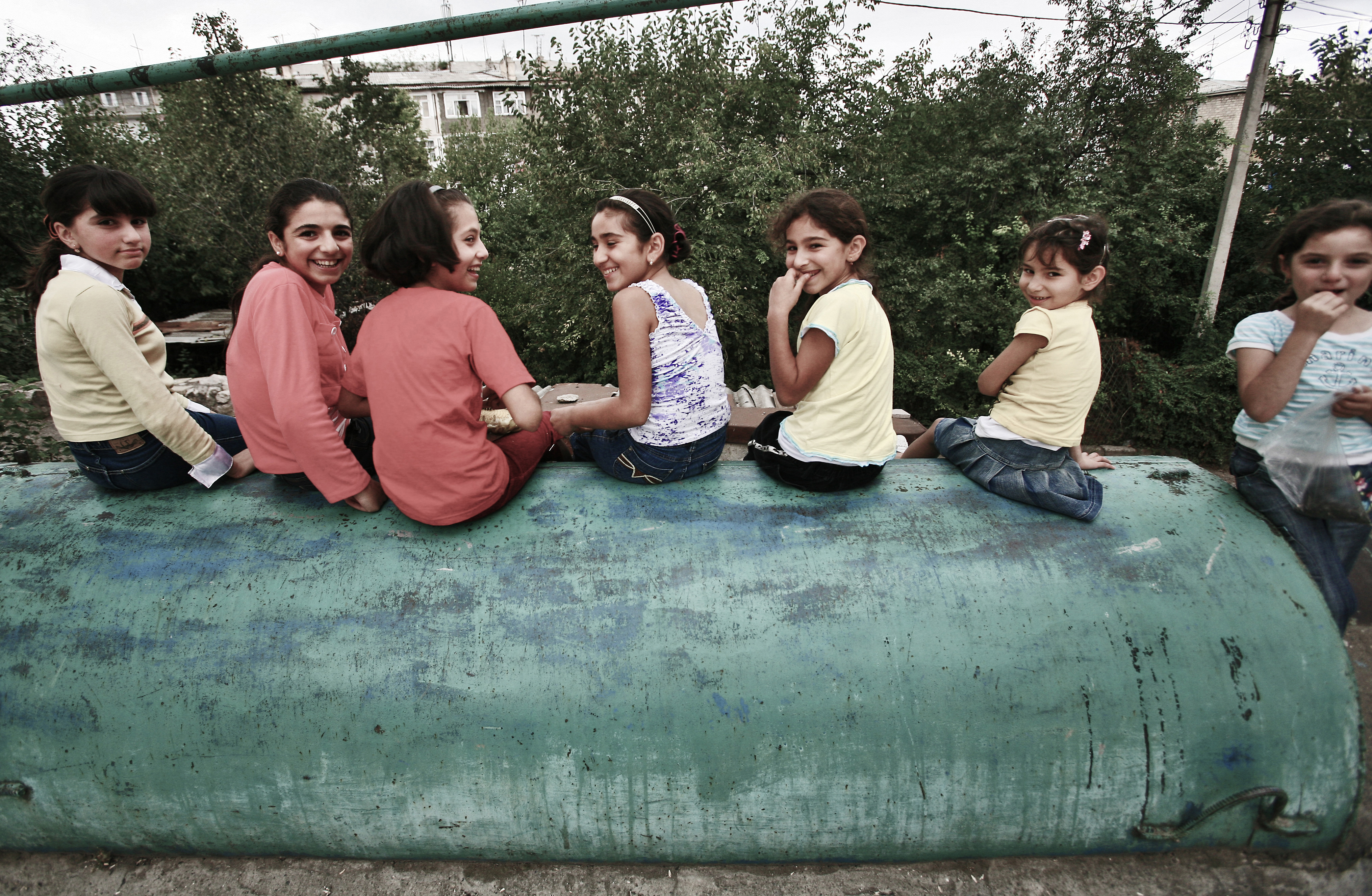 Nagorno-Karabakh   A group of girls plays on the gas tank in a residential district in the capital Stepanakert. With a population of 140.000, the majority being Armenians, Nagorno Karabakh Republic aims to achieve political and economical stability. The high unemployment rate, low salaries and the lack of opportunities for the youngsters make the unrecognized republic to be a hard place to live. Stepanakert, Nagorno-Karabakh, 20 September 2008.