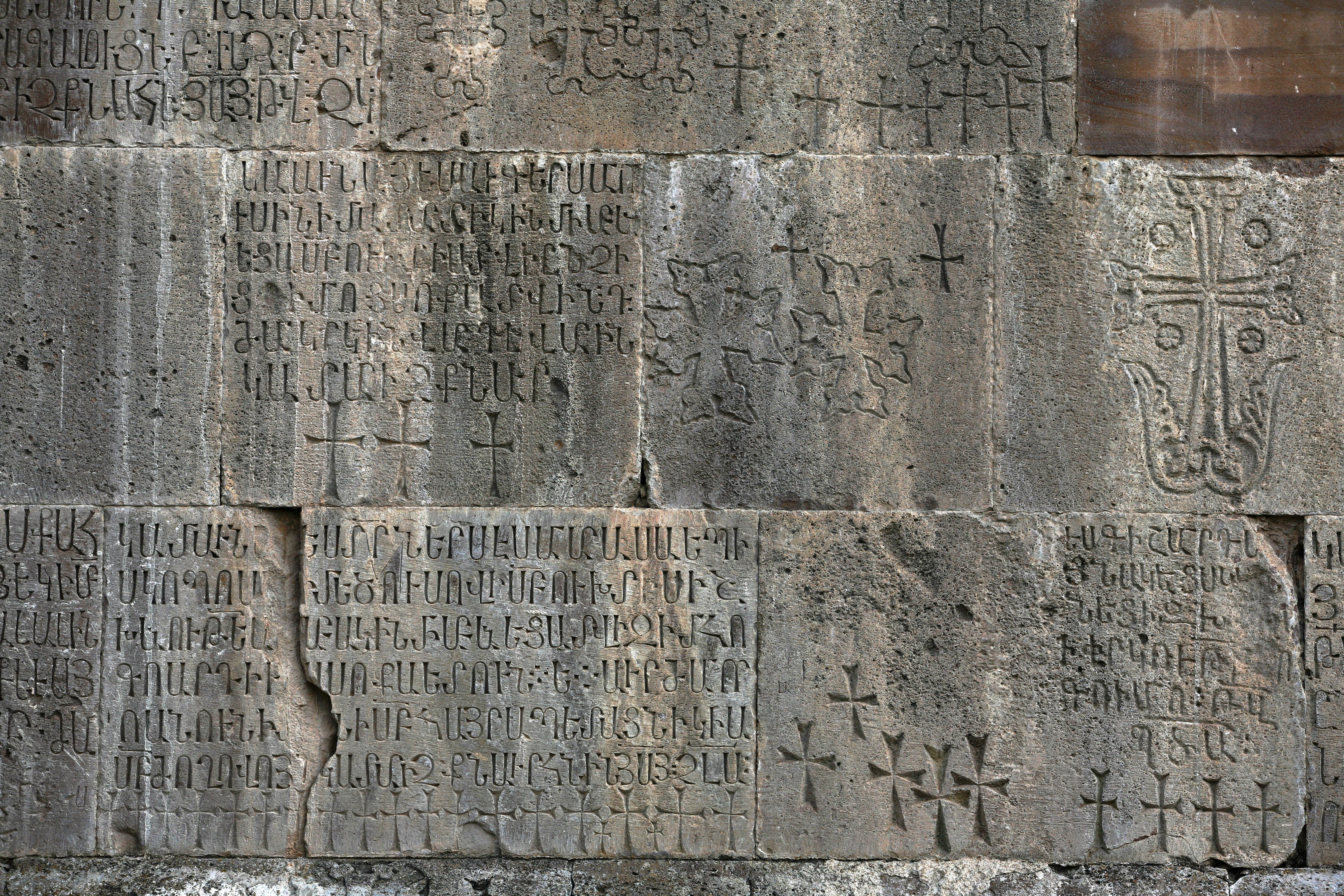 Nagorno-Karabakh   Decorations are seen on the exterior walls of the Cathedral of St. Hovhannes Mkrtich, part of Gandzasar monastery, a X-XIIIth century Armenian monastery situated in the Martakert region, Nagorno-Karabakh. "Gandzasar" means treasure mountain or hilltop treasure in Armenian. The monastery holds relics believed to belong to St. John the Baptist and St Zechariah, father of John the Baptist. Most important structure of the Gandzasar monastery is the Cathedral of St. Hovhannes Mkrtich, built between 1216 and 1238. Gandzasar is considered one of five the most important examples of Armenian monumental art which belong to the world’s architectural masterpieces. Martakert, Nagorno-Karabakh, 20 September 2008.