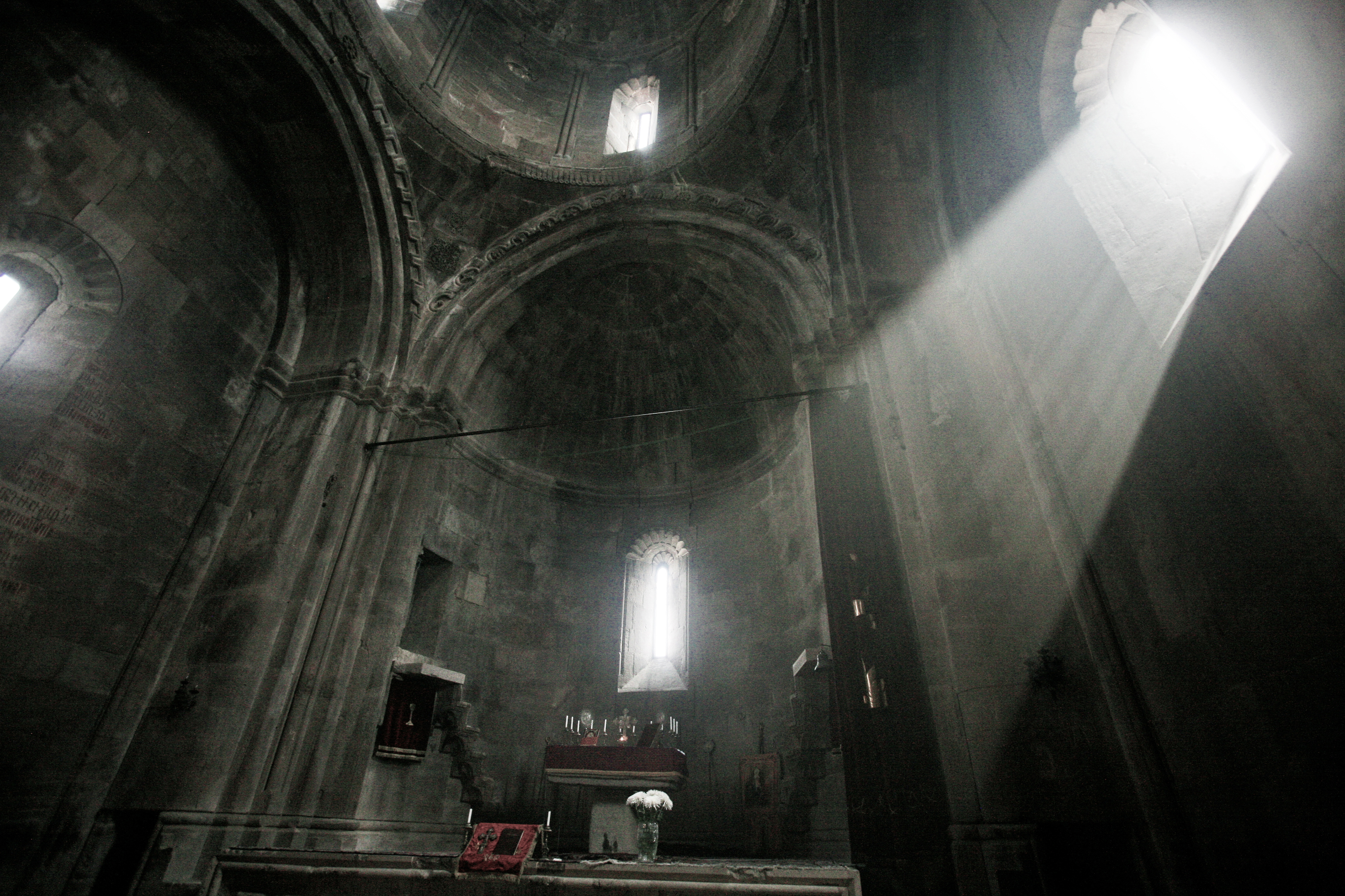 Nagorno-Karabakh   The main altar of the Cathedral of St. Hovhannes Mkrtich, part of Gandzasar monastery, a X-XIIIth century Armenian monastery situated in the Martakert region, Nagorno-Karabakh. "Gandzasar" means treasure mountain or hilltop treasure in Armenian. The monastery holds relics believed to belong to St. John the Baptist and St Zechariah, father of John the Baptist. Most important structure of the Gandzasar monastery is the Cathedral of St. Hovhannes Mkrtich, built between 1216 and 1238. Gandzasar is considered one of five the most important examples of Armenian monumental art which belong to the world’s architectural masterpieces. Martakert, Nagorno-Karabakh, 20 September 2008.