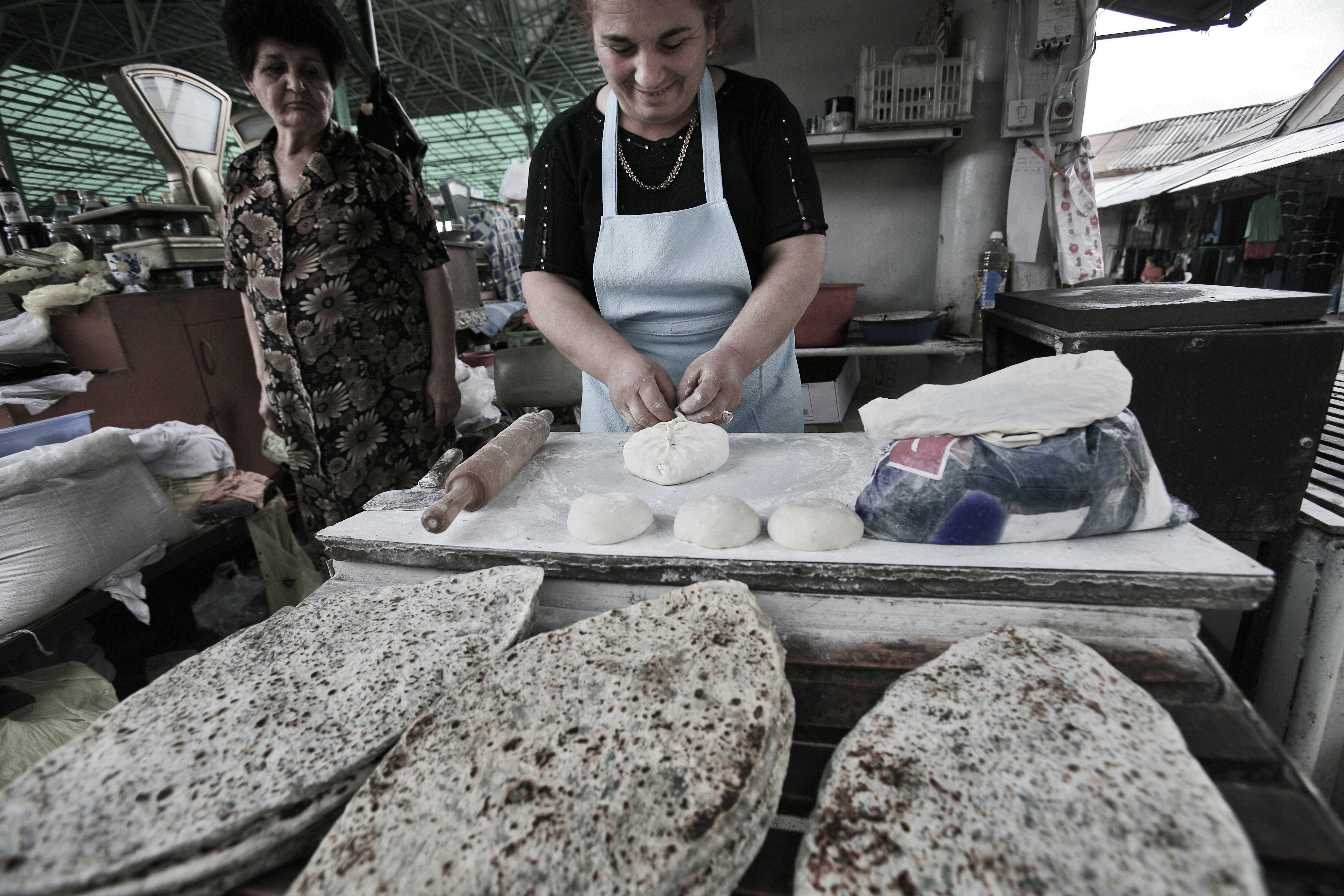 Nagorno-Karabakh   A saleswoman makes "janghialov hats", a traditional dish made by a mix of 7-8 tipes of greens covered in dough, in a food market in Stepanakert. With a population of 140.000, the majority being Armenians, Nagorno Karabakh Republic aims to achieve political and economical stability. The high unemployment rate, low salaries and the lack of opportunities for the youngsters make the unrecognized republic to be a hard place to live. Stepanakert, Nagorno-Karabakh, 20 September 2008.