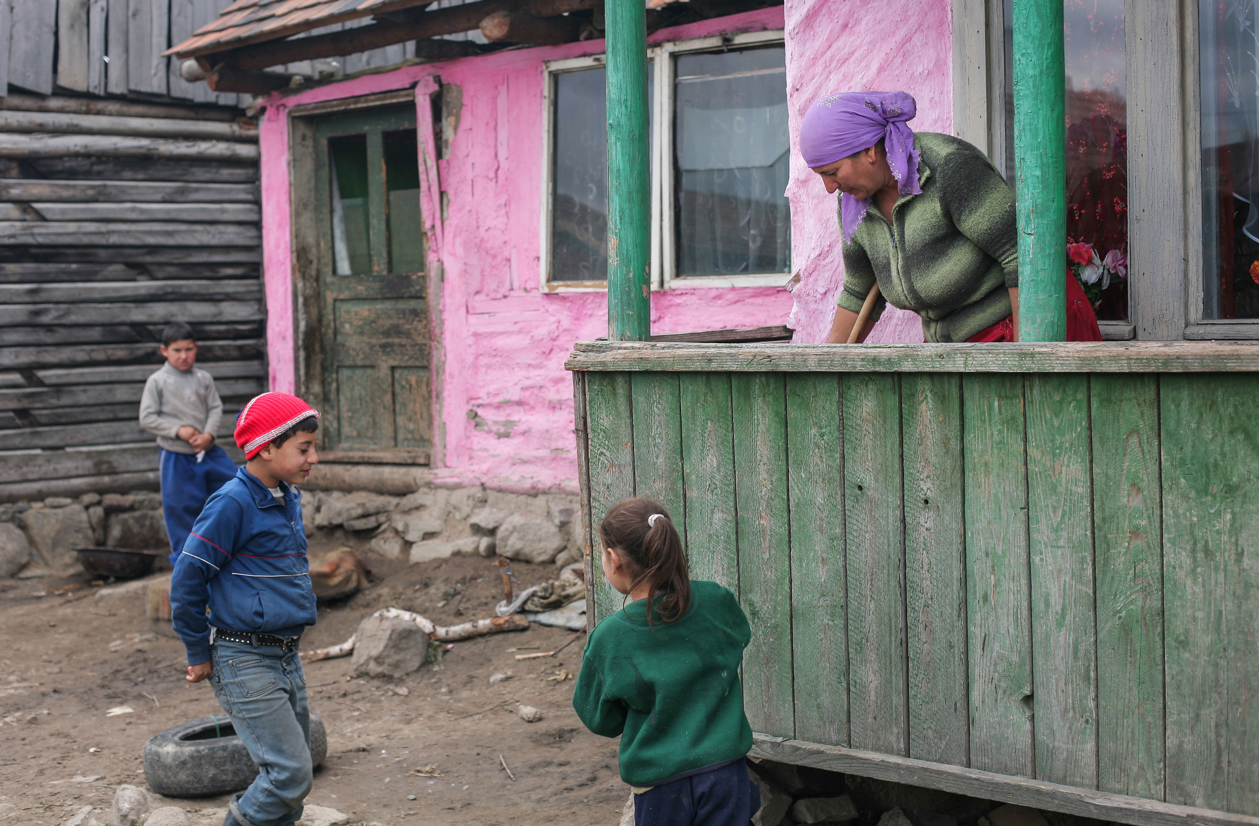 Gipsy children   Children from the gipsy family Grancsa are playing in the yard of their family settlement in Sancraieni village, Harghita county, Romania, 5.10.2013.