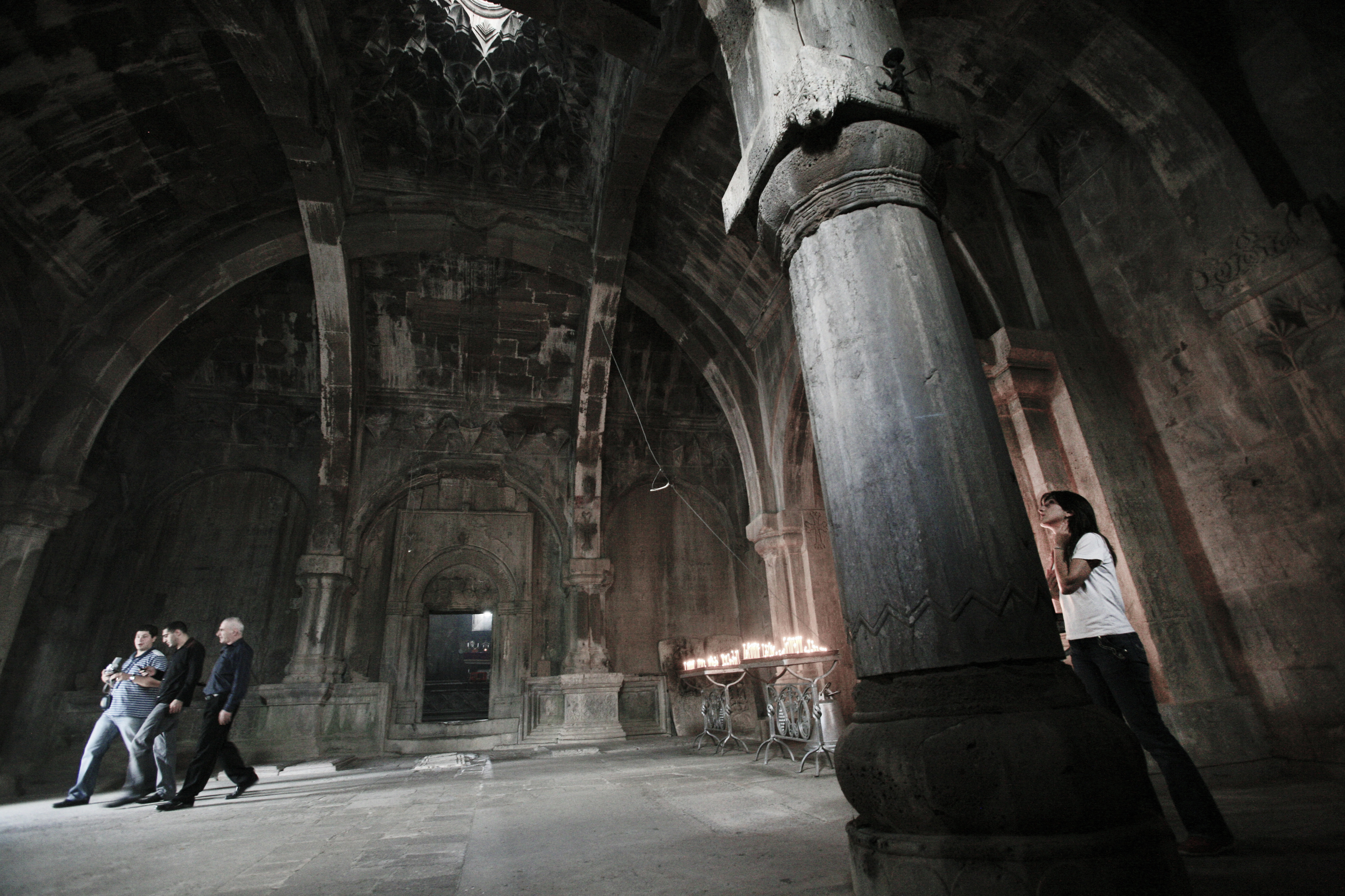 The interior of Gandzasar monastery, a X-XIIIth century Armenian monastery situated in the Martakert region, Nagorno-Karabakh. "Gandzasar" means treasure mountain or hilltop treasure in Armenian. The monastery holds relics believed to belong to St. John the Baptist and St Zechariah, father of John the Baptist. Most important structure of the Gandzasar monastery is the Cathedral of St. Hovhannes Mkrtich, built between 1216 and 1238. Gandzasar is considered one of five the most important examples of Armenian monumental art which belong to the world’s architectural masterpieces. Martakert, Nagorno-Karabakh, 20 September 2008.