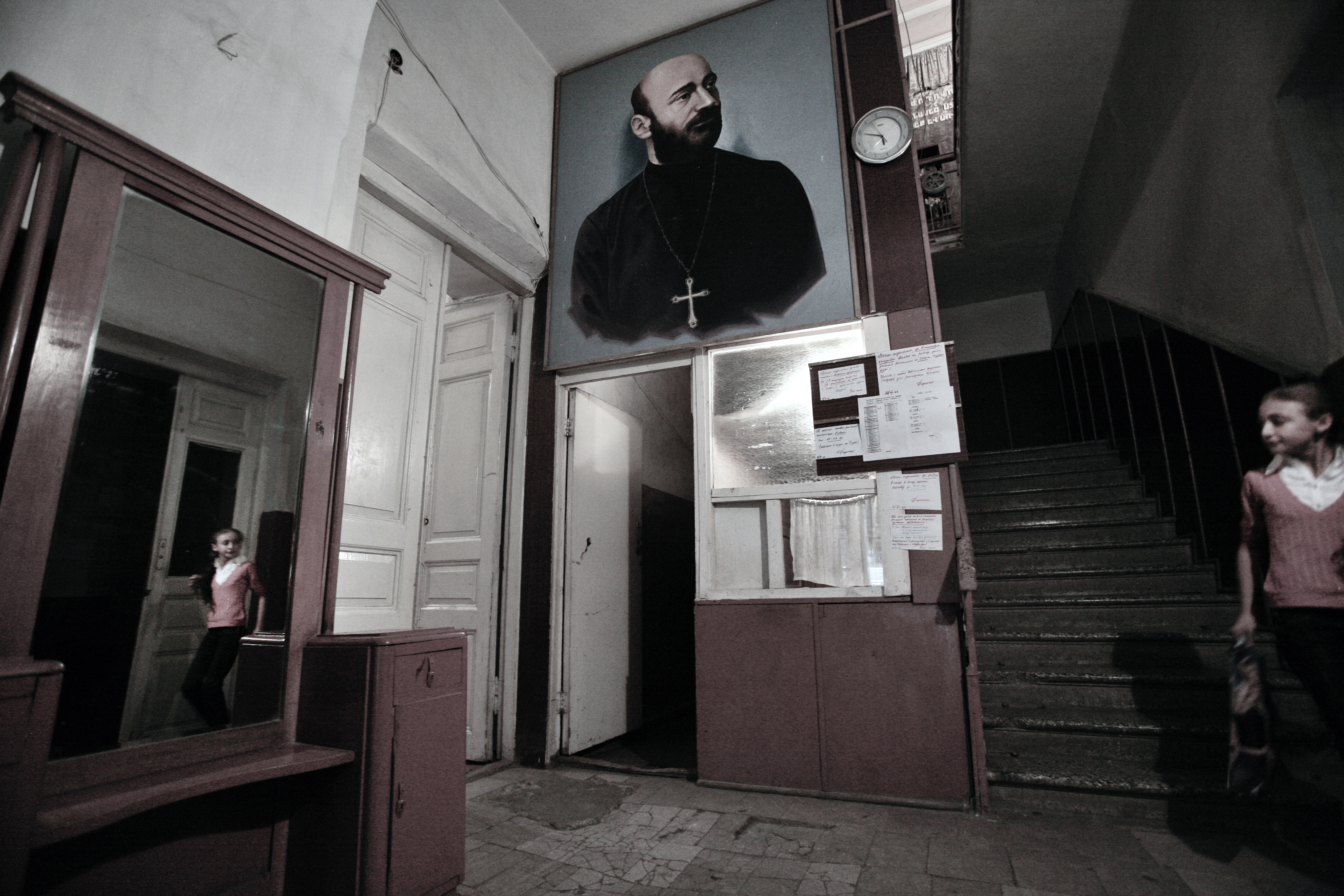 Nagorno-Karabakh   A schoolgirl walks down the stairs in the Khomitas Musical School from Stepanakert. Besides learning the classical instruments, the pupils also learn how to play to traditional instruments like duduk, kanun, zurna, oud or saz. Stepanakert, Nagorno-Karabakh, 20 September 2008.
