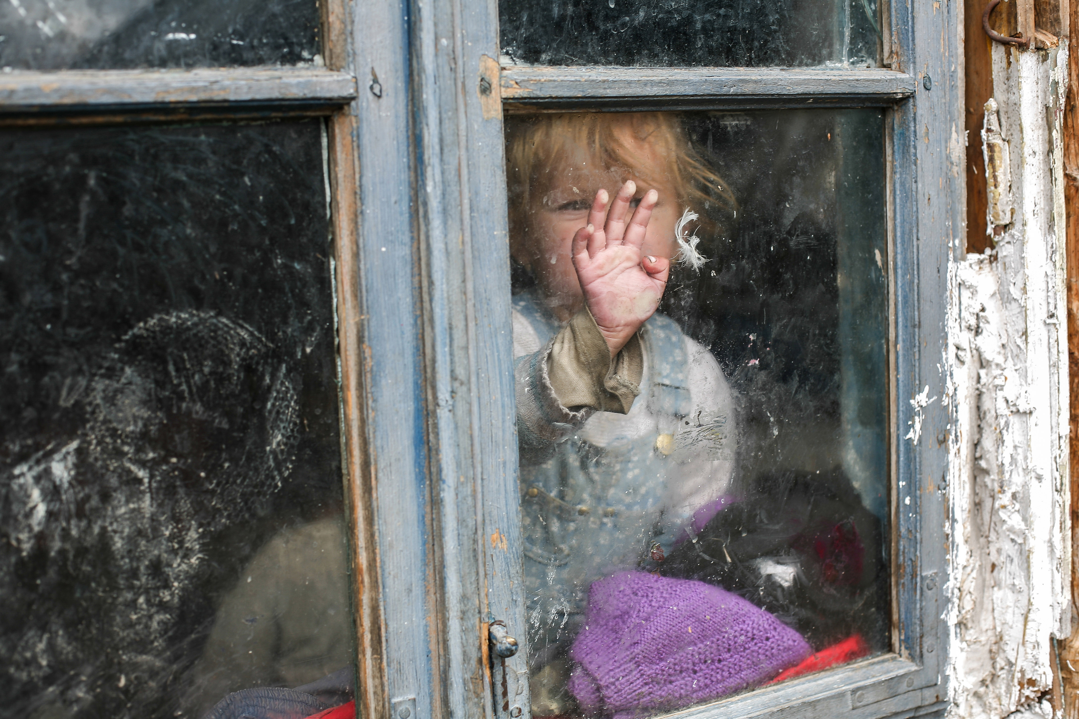 Gipsy girl   A little girl is posing from behind a window, in an improvised gipsy settlement on the outskirts of Miercurea Ciuc city, Romania, 3.10.2013. Several Roma families have been living improvised shelters, after the local authorities evicted them from houses they had abusively occupied downtown Miercurea Ciuc.